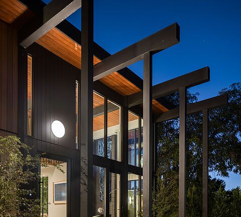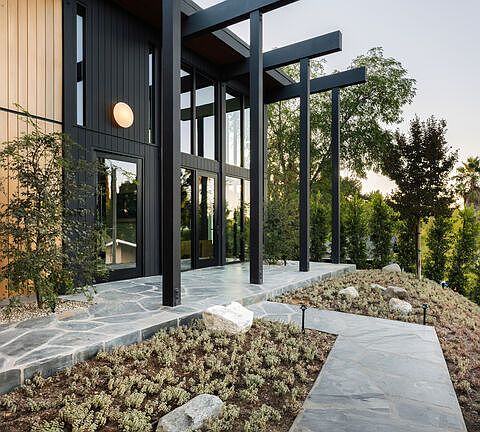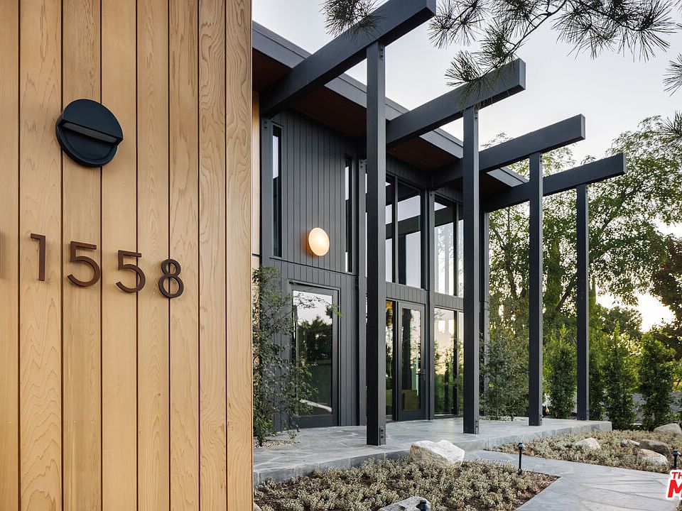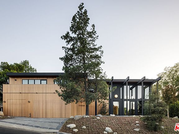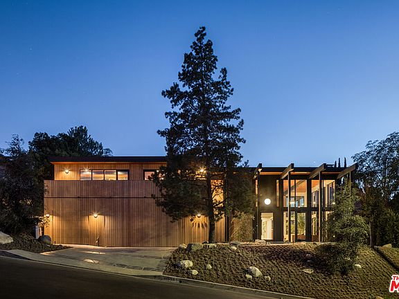 This period perfect FRYMAN CANYON 5 bed, 5 bath, MID-CENTURY POST AND BEAM renovation embodies the ethos of its time by staying true to its CLEAN LINES and careful simplicity with thoughtful re-imagining to cater to today's MODERN LIVING AND ENTERTAINING. This three year renovation was designed and carefully sourced by a high end design group with absolutely NO EXPENSE SPARED. This DWELL FEATURED home has floor to ceiling WALLS OF GLASS in an awe-inspiring living room with 20 FT. CEILINGS, complemented by a massive TWO-STORY MATTE BLACK GAS AND WOOD BURNING FIREPLACE and stunning slate floors that seamlessly extend to the outdoors, FUSING THE INDOOR AND OUTDOOR SPACE with ease. Experience a DEEP CONNECTION TO NATURE through multiple walls of glass, opening to WONDERFUL OUTDOOR SPACES showcasing EARTH, WATER AND FIRE ELEMENTS, with a new PEBBLE-TEC SALT WATER POOL/SPA, gas fire pit sitting area, WOOD DECK and PICTURESQUE MATURE LANDSCAPING, including JAPANESE MAPLE trees and blooming MAGNOLIAS providing complete privacy. An expansive GOURMET KITCHEN has a 25 FOOT QUARTZITE ISLAND, with MIELE appliances, and an island of slatted custom white-oak mill work cabinetry designed and CUSTOM MADE for the space. Slatted wood design accents grace the stunning staircase to the upstairs loft and bedrooms. WHITE OAK wide plank floors span the upstairs space, where ALL UPSTAIRS BEDROOMS ARE EN-SUITE, with bathrooms featured in HOUSE BEAUTIFUL and various other publications. The large primary suite has a balcony and mountain views, with a ROOM SIZED DRESSING ROOM with 8 custom-built OAK WARDROBE CLOSETS with additional built-in drawers offering plentiful enclosed wardrobe and shoe storage. The primary bathroom has a custom made dual vanity, Quartzite counters, TERRAZO FLOORS and a large walk-in shower and separate soaking tub. AUTOMATIC BLINDS ON REMOTES in most rooms allow light or privacy instantly. FULL SECURITY SYSTEM with cameras. TWO LAUNDRY ROOMS, one on each level. There are simply not enough words to describe this BREATHTAKING and emotional home. Furnishings are a fusion of restored Danish/European MCM imports and new Modern. If your clients are looking for an ULTRA-SEXY renovated lease that is NOT your cookie-cutter new construction, THIS IS IT. Just a couple blocks to serene HIKING TRAILS and close to all the studios, with easy access to Beverly Hills and Hollywood and top rated Carpenter School District. This VISUALLY CAPTIVATING home is UNRIVALED in today's rental market!