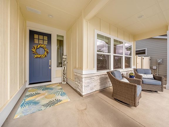 The Meringue of Hope Springs! Exquisite Ted Mason Signature Home, offering refined living with thoughtful upgrades throughout! Tall ceilings and dark wood cabinets are paired with a stunning kitchen that features stainless steel appliances and a built-in gas range, perfect for culinary enthusiasts. Closets are enhanced with built-ins providing ample storage, while the primary bedroom boasts an accessible closet with entrances from both the bathroom and the laundry room. The garage is thoughtfully designed as a 2-car with tandem space, ensuring room for vehicles and hobbies. The charm continues with a covered front and back patio, set against the backdrop of a serene creek/stream with no rear neighbors, offering privacy and picturesque views. The community's extensive amenities include garden areas, a farmhouse-inspired clubhouse, pool, and walking paths along a creek, all designed to enhance your living experience!