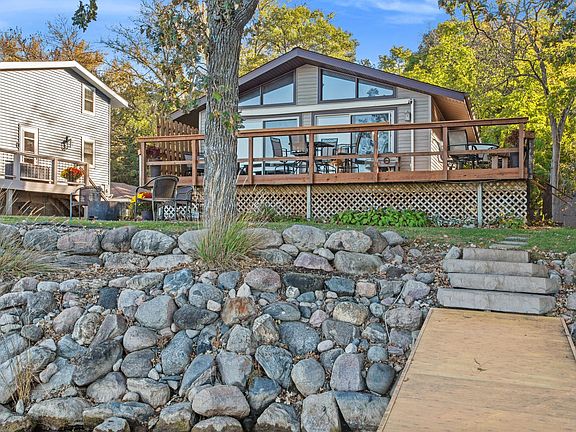 Discover this fully furnished year-round, two bedroom, one full bath home on Clearwater Lake. The interior features vaulted lakeside windows, classic hardwood floors and a cozy fireplace. The property boasts 50 feet of private lake frontage on almost 1/2 acre. Step out onto the huge west facing deck to enjoy the exceptional afternoon sun and sunsets.