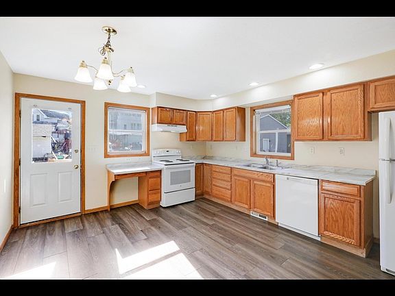 This listing is a 3 level side by side duplex. Main level consists of a living room, dine-in kitchen, half bath and kitchen.