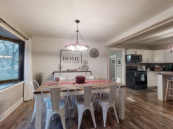 So much style! Enjoy small town living in this move-in ready ranch with updates in Paxton. You'll appreciate the fresh clean lines found throughout starting with the open dining room and kitchen. The front bay window lets natural light stream in, which highlights the shiplap accents and low-maintenance wood flooring. Entertain with ease in the open kitchen with plenty of cabinet and counter space, including a center island with bar seating. Relax and unwind the in the sunken living room featuring a neutral palette and modern electric fireplace with shiplap surround. Down the hall, you'll find three spacious bedrooms and the updated full bathroom with bonus storage solutions. Need more? Check out the heated 2.5 car detached garage or storage shed for expanded options. The backyard offers a new fence and great patio space with no backyard neighbors. Take a look at this fantastic find today!