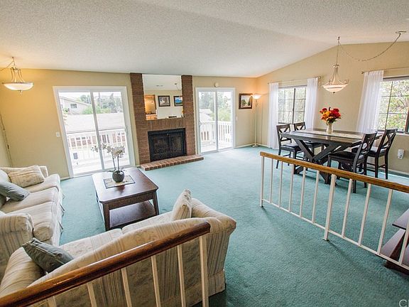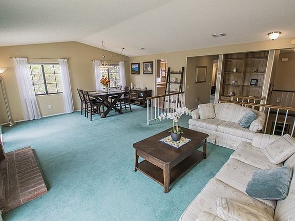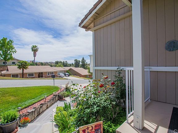 Tucked away on a cul-de-sac near the Calimesa Country Club sits this charming family home. Park-like front yard with split-level entry and leaded glass front door. Open living room with lots of natural lighting, vaulted ceilings, cozy brick fireplace, large dining area, and new dual pane sliders that open up to a Trex deck balcony overlooking the front yard with mountain views. Updated kitchen with Corian counters and tiled backsplash, seamless sink, tile flooring, natural Alderwood cabinetry, and recessed lighting. New interior paint. Large master bedroom with walk-in closet, slider to rear yard, double sinks, and tiled shower. 2 additional bedrooms and bath with glass enclosed tub/shower combo. Fully covered backyard patio with teak deck flooring, grassy area, and storage shed. Newer oversized AC/heating unit and roof. Close to shopping and freeway access.
