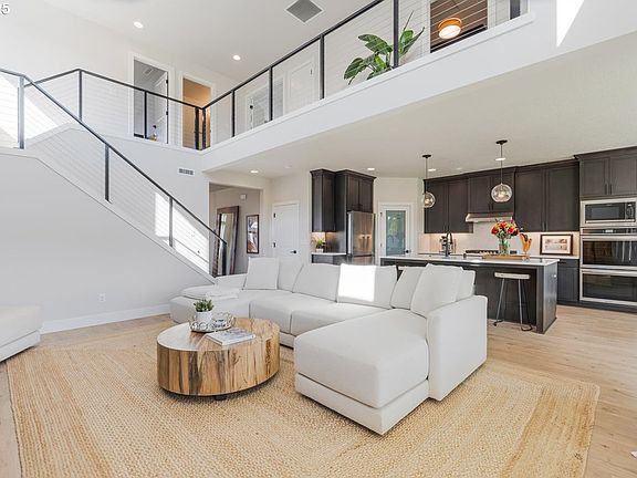 Step into modern living with this stunning one year old home that feels better than new. From the moment you enter, soaring 20-foot ceilings and oversized windows fill the space with natural light. The sleek kitchen boasts ceiling height cabinets, double ovens, under cabinet lights and built in USB outlets. A modern cable stair railing leads upstairs, where the open design allows you to take in views of the space below. Every detail has been designed for style and function, from the up down blinds to the contemporary finishes throughout. The tandem three car garage offers plenty of room for vehicles, storage, or a home gym. Modern, light-filled, and thoughtfully designed, this is your forever home.