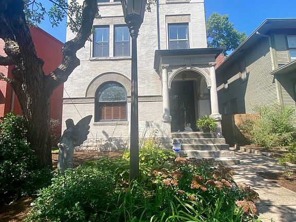 Welcome to this stunning Circa 1900 solid 3-brick thick Victorian offering 3767 Sq. Ft. of grand elegant living spaces & old-world charm with 5 bedrooms and 3 full baths. You will find beautiful oak flooring with stained patterns, original pine floors, lots of natural woodwork, beautiful vintage fireplace mantels, lovely crystal chandeliers, stained glass windows, original hardware, exposed brick, natural pocket doors, exceptional crown moldings, twisted rope w/brackets and dental egg & dart. There are also gorgeous Anaglypta & embossed wall coverings. Step into the grand foyer with sweeping staircase and an enormous, mounted mirror. (which will remain). To the left is the formal living room with gas fireplace. Behind the living room through pocket doors is the banquet size dining room with a gorgeous crystal chandelier. Behind the dining room you will find a full bath with tub/shower & pedestal sink. The original rear staircase is at the back of the hallway off the foyer. The eat-in kitchen with 6 burner US Range and custom vent hood, a farm style sink, marble counters, maple cabinets with a rolling library ladder for access to the tall cabinets is at the back of the house with access to the rear covered porch for all your alfresco dining needs. Just off the kitchen is the large laundry room with full size washer & dryer. Up either set of staircases to the 2nd floor where you will find 3 bedrooms and another full bath. There is a mixture of original oak and pine flooring along with new oak flooring. The front bedroom (currently used as a den) is generous in size and has a sitting room attached (which could be turned into a walk-closet). The middle bedroom, currently used as the primary, has a beautiful fireplace mantel. The rear bedroom has newer oak hardwood flooring and a glass block window. On up to the 3rd floor, you will find the rear bedroom that has another natural fireplace mantel. There is another full bath on this floor as well with exposed brick and shower. The enormous front bedroom (currently used as family room and home office) has another fireplace mantel, built in bookcases, and a wet bar in the alcove. Out to the rear yard there is off street gated parking, a small gazebo and wonderful brick patio. There are 3 separate central air systems and boiler heat with original radiators which is very comfortable moist heat and doesn't produce any dust. This is a must see for anyone that enjoys Victorian architecture and period living spaces.