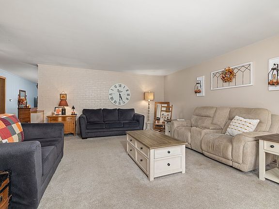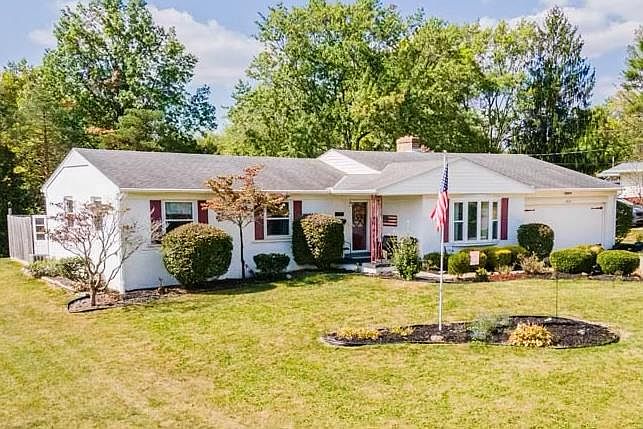 ***Open house scheduled for 10/5/25 has been canceled as property is in contract*** The perfect brick ranch, in the Ranchwood Neighborhood, where the lovely inside living flows seamlessly into the fantastic outdoor living spaces! Spacious living room opening into the dining room with fireplace and sliders to the enclosed porch. Recently updated kitchen includes appliances and convenient main floor laundry closet. Main bathroom was recently updated with all new finishings. Owner's bedroom with two closets and private bathroom. Recently added oversized concrete patio with a covered hot tub, retractable pergola and great spaces for entertaining. Major updates include kitchen remodel, hall bathroom completely updated, electric panel, vinyl replacement windows, flooring and fresh paint throughout!