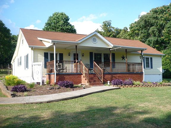 Beautifully remodeled home w many upgrades & renovations on almost 2 acres in the warm & friendly Callands Community! Refinished pine floors in living room & bedrooms, enormous kitchen area w walkout oversized deck perfect for entertaining! All appliances conveying incl refrigerator, stove, washer & dryer. Relaxing full covered front porch, carport & multiple outbuildings. Replacement Windows!