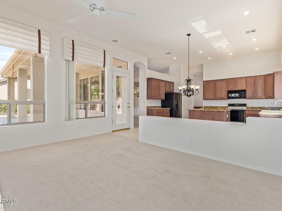 Original Owners! First time on the market! This lovingly cared for home is ready for a new owner to make it home. This is the extremely popular 2248 floor plan. 3 Bedrooms 2 Bathrooms PLUS a Den with a closet that could easily be turned into a 4th Bedroom. New AC Heat and Water Heater in 2021, Northern exposure rear yard has Great outdoor living spaces with extended patio, built in BBQ and Fireplace, Bar and sitting area. Even has a built in lighted retractable flag pole. Watering systems front and back, flush mount speakers in most rooms and patio. 3 car garage. All this in Beautiful Troon. Convenience is key with watering systems in both front and backyards, making lawn maintenance a breeze. The house is equipped with flush mount speakers in most rooms and the patio, enhancing the ambiance for any occasion. With a spacious 3-car garage, there's ample room for your vehicles and storage needs.