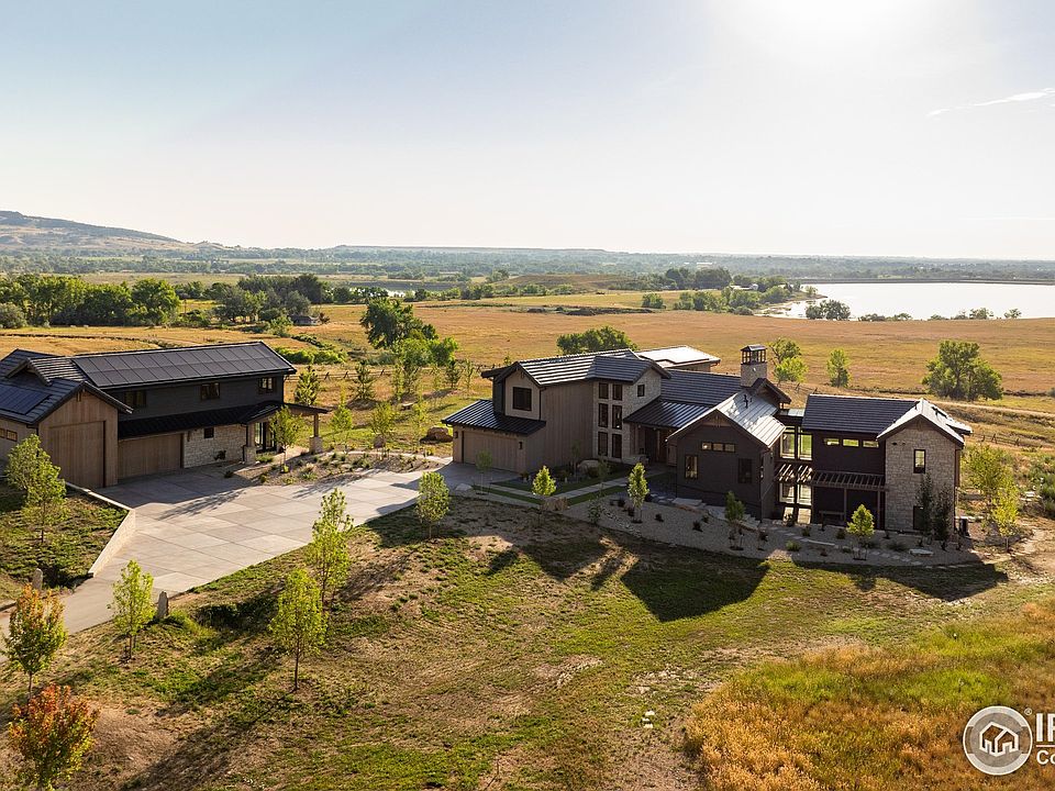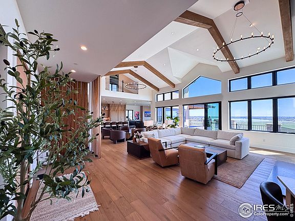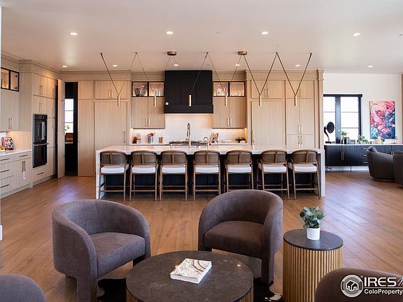 Welcome to the Net Zero Sanctuary at Caribou Springs Ranch, Designed by Whitten Design Group and Built by Ted Stringer with Stringer Construction, this home is a 7239 sq ft architectural masterpiece set on 5.4 acres. This estate offers 2 primary main floor suites, totaling 6 bedrooms, 7 bathrooms, plus a 2862 sq ft accessory building with its own bath and RV garage + 2 car garage. Features include a two-story glass hallway, oversized & accordian windows, expansive doorways and floor-to-ceiling glass in the primary suite. A 13-foot ceiling gym 17x22 ft room, connects to a healing spa with a steam shower/cold side & healing infrared sauna. The chef's kitchen showcases high end appliances, a 16-foot waterfall island with 3-inch Lincoln Gold countertops, complemented by a hidden scullery. In the walk out basement full of entertainment, there's an indoor/outdoor bar, a speakeasy-style entry which leads to a soundproof music studio or retreat. Built within the coveted gates of Caribou Springs Ranch, this architecturally stunning home offers privacy, serenity, and direct access to the community's extensive ~5 miles of private trails and 700+ acres of open space & Foothills Reservoir overlook. Perched below the rolling foothills and overlooking a private reservoir, the home is a sanctuary designed for today and built for tomorrow. Amenities include a clubhouse with pool, hot tub, tennis, pickleball, basketball, and on-site horse boarding, all minutes from Boulder, Lyons and Longmont.