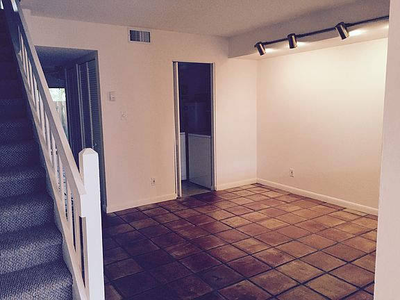 Two Story Townhouse with 3 bedrooms upstairs, 2 1/2 bath. Living room, dining room (or office) and eat-in kitchen downstairs. Washer, dryer and ceiling fans throughout. Mexican tile throughout entire ground level and new carpeting upstairs. Front and rear patio with balcony. Privacy and off-street parking. Sabal Chase is safe, well maintained community with clubhouse, two pools, tennis courts, basketball, fitness/rec room. Ready for move-in. 2 month security required.