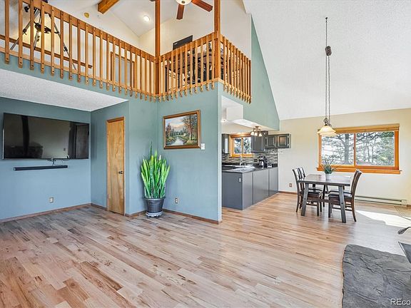 The kitchen features refreshed cabinetry with new hardware, stainless steel appliances and a pantry. Step outside from the kitchen to an expansive Trex deck where you’ll be greeted by panoramic views of snow-capped mountain peaks and the iconic view of Lions Head at Staunton State Park—a perfect backdrop for morning coffee or sunset gatherings. The half acre lot is flat and a place for your pets to roam. The private primary suite upstairs offers a five-piece bathroom with a soaking tub, walk-in shower, dual vanities and more mountain views. Two closets provide plenty of storage and organization. A loft area is a perfect space for working, crafting or reading a good book. The main level has two guest rooms with an adjacent full bath with updated fixtures. A sizable room in the lower level can be used as a 4th bedroom or rec room. Fresh carpet and paint throughout give the home a clean, updated feel, while recently refinished hardwood floors add warmth and character. You'll have plenty of space for your vehicles and outdoor adventure gear in the garage, the convenient storage shed and a brand-new asphalt driveway will offer level parking for a camper. There are endless Open Space hiking and mountain biking trails nearby, world class fly fishing on the Platte River and it's an easy drive on 285 to skiing in Breckenridge. Whether you're cozying up by the fire in winter or hosting summer barbecues with the mountains as your backdrop, this home is designed for every season of life. Don’t miss out—schedule your private tour today and see all that this wonderful home has to offer!