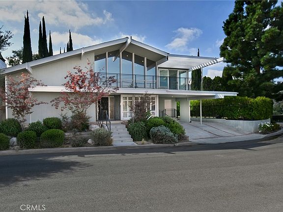 Beautiful Mid-Century Modern high in the hills of Studio City, this midcentury-inspired architectural has been remodeled with designer touches throughout. Capturing fantastic views of Studio City and the hillsides beyond, the 5-bedroom retreat features light, bright interiors, a formal dining room and a living room with soaring cathedral ceilings and a wood-burning fireplace. The remodeled chef’s kitchen boasts a center island, built-in dining nook, Quartz counters, tile backsplash, shaker cabinets, a walk-in pantry and Thermador/Miele appliances. Sliding doors open to the entertainer’s backyard with a pool, alfresco dining area, manicured gardens and terraced patios. Bedrooms and baths include the primary suite with dual closets and a double rain shower. Features include an office, leased solar and a sound system, located in the Carpenter school district, moments from the Fryman Canyon Trails and shops and restaurants on Ventura Blvd. Home needs minor repairs and a refresh.
