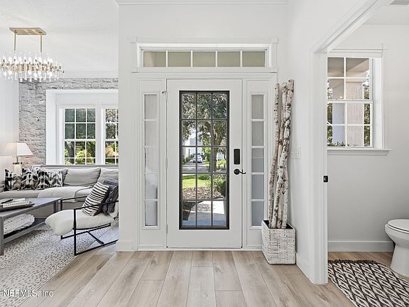 Welcome to this stunning three-bedroom, two-and-a-half-bathroom home that perfectly blends industrial chic with cozy comfort! This completely remodeled gem showcases an extraordinary open-concept kitchen that's truly one-of-a-kind in the community. Luxury vinyl plank flooring flows throughout the main living areas, while plush carpeting adds warmth to the secondary bedrooms. The heart of this home features quartz countertops, custom pantry design, and a dedicated coffee and wine station - because life's too short for bad coffee! A gas fireplace creates the perfect ambiance for relaxing evenings. The versatile first-floor layout seamlessly accommodates living, family, and dining areas that adapt to your lifestyle needs. Upstairs, two spacious secondary bedrooms share a convenient jack-and-jill bathroom, while the primary bedroom features LVP floors with a newly designed bathroom and a walk-in closet that's been thoughtfully redesigned. Throughout the home, you'll appreciate the fresh interior and exterior paint, all-new lighting fixtures, and the peace of mind that comes with a four-year-old roof - this move-in-ready package has every detail covered. The screened lanai opens to an entertainer's dream backyard with storage shed and fenced privacy. The extended driveway provides ample parking, and the garage offers exciting potential for additional living space with framing and utilities already started. Located in Hampton Park, this vibrant neighborhood offers resort-style amenities including pool, tennis courts, basketball courts, clubhouse, fitness center, and twenty-four-hour security. The community sits minutes from Fort Family Regional Park, with convenient access to major roadways, healthcare facilities including Mayo Clinic, shopping, and dining. You'll find yourself just twenty minutes from virtually anywhere in Jacksonville!