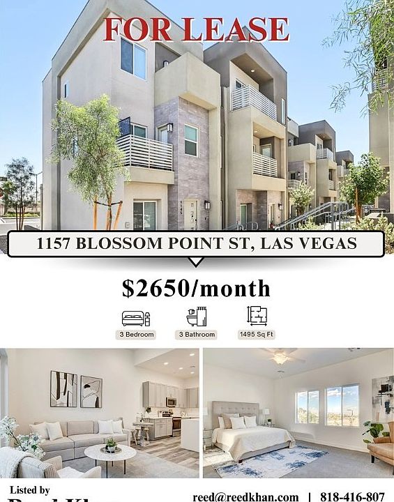 Stunning Brand-New Townhome in Summerlin Be the very first to live in this never-lived-in, 3 bedroom, 3 bath tri-level townhome located in one of the most desirable gated communities in Summerlin, Las Vegas. This modern residence features an open and bright floorplan, sleek finishes, and abundant natural light throughout. The top level offers a private rooftop terrace, perfect for entertaining or relaxing with mountain and city views. Highlights include: 3 spacious bedrooms & 3 full baths Brand-new construction move-in ready Tri-level design with rooftop terrace Gated community with modern amenities Prime location near Downtown Summerlin Mall, Red Rock Casino, shopping, dining, and entertainment Enjoy the perfect blend of luxury, convenience, and lifestyle in the heart of Summerlin.