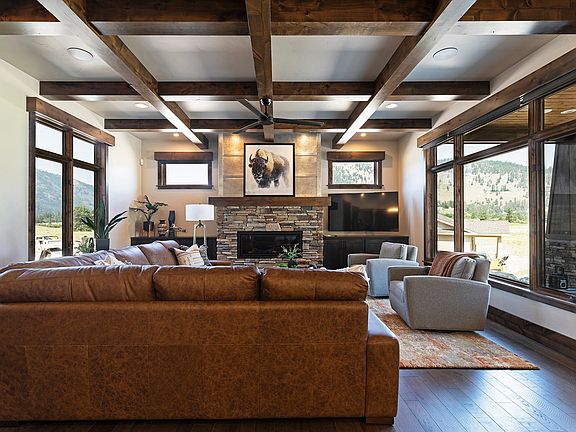 *To be built Rockcreek Floor Plan photos are from previous builds at Canyon River* Welcome to your future dream home in the prestigious Canyon River Golf Community, where luxury, comfort, and convenience converge. This Rockcreek Floor Plan offers over 2,300 square feet of refined single-level living, thoughtfully designed to embrace Montana's breathtaking beauty and lifestyle. Set on a spacious .35-acre lot, this new construction home provides stunning mountain and golf course views, all within a community that takes care of the details for you. Enjoy maintenance-free living with the HOA handling lawn care, snow removal, and sprinkler system maintenance—so you can focus on the lifestyle you love. Inside, you'll find three generously sized bedrooms, including two private en-suites, plus a versatile bonus room perfect for a home office, playroom, or media space. Soaring vaulted ceilings with optional 8-foot doors throughout, and custom wood beam accents elevate the home's elegance and architectural character. The heart of the home, the kitchen, is designed to impress with luxury finishes and timeless style, ideal for everyday living and entertaining. An oversized patio, accessible from both the kitchen and the primary suite, extends your living space outdoors and makes the most of the serene surroundings. Best of all, the floor plan is already selected, sparing you the stress of decision fatigue while still offering a personalized custom build experience with high-end finish options inspired by other beautiful homes already completed in Canyon River. Don’t miss this rare opportunity to build new without compromise in one of Missoula’s most sought-after communities.