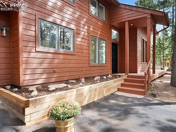 Experience the true mountain lifestyle: Discover tranquility in this charming, updated 3-bedroom, 2-bath single-family home. In this quiet neighborhood, the sounds of city life are replaced by the gentle rustle of the breeze through the pine needles and the calls of local wildlife, offering a genuine retreat from the hustle and bustle. Enjoy unparalleled views from every window and direct access to BLM land from the backyard. A spacious deck with a built-in chimenea is perfect for enjoying the ourtdoors. The exterior boasts a new stain, while the interior features fresh paint, new flooring, updated lighting, a renovated kitchen, the bathrooms have been fully updated, and the kitchen appliances are all brand new. A cozy wood-burning stove provides warmth on chilly evenings, and a paved driveway ensures easy access. This home is the of both worlds...you'll enjoy the privacy and peace of a true mountain escape, coupled with the ease of having amenities nearby as you're only minutes away from the shops and services of Woodland Park.