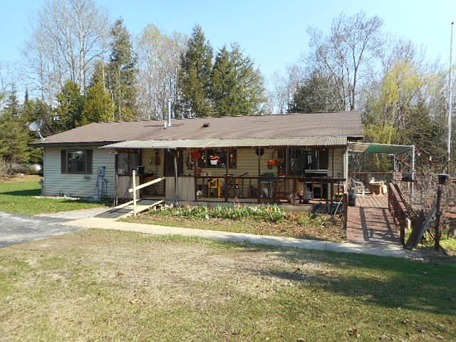 200' of Beautiful Manistique River frontage on a gentle slope, lot tucked away in Germfask for a surprising amount of privacy once you get there!! A Wisconsin modular home that is known for its exceptional quality offers a poured full finished walkout basement, window wall facing the river, with a full wrap around deck! The main level is 2 bedrooms, 2 baths with a large shower, and access ramps for retirement in mind. Laminate flooring with a open greatroom overlooking the river with wrap around deck to enjoy, swans, geese, and fishing out your back door! Main floor laundry with nice cabinets, & island all open for entertaining. The lower has another kitchen, bath and family room with patio door to river. Nice size bedroom, and great storage room! Tucked away for privacy yet easy access!