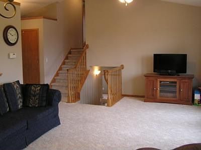 MOVE RIGHT INTO THIS BEAUTIFUL HOME W/AN OPEN FLOOR PLAN! 3 BEDRMS, OFFICE & 2.5 BATHS! LARGE LIVING RM W/HIGH CATHEDRAL CEILINGS + WALKS OUT TO DECK IN PRIVATE BACKYARD! BRIGHT KITCHEN W/WOOD LAMINATE FLOORS, PANTRY & ALL APPLIANCES INCLUDED. HUMONGOUS FAMILY RM IN WALK-OUT LOWER LEVEL W/CORNER GAS FIREPLACE! MASTER SUITE W/PRIVATE BATH + WALK-IN CLOSET! SURROUND SOUND SYSTEM WITH BIG SCREEN TV, RECEIVER W/DVD, RADIO, SPEAKERS & SOUND BOX ALL INCLUDED! ANDERSON WINDOWS & NEAR INTERMEDIATE SCHOOL!