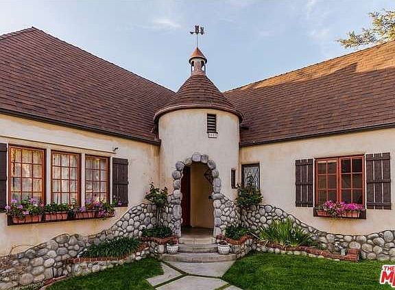 Have you ever dreamt of waking up in the French countryside and enjoying an espresso and a beignet from the terrace of your French farm house overlooking the verdant hills? This may as close as you can come while living in Glendale's hottest neighborhood, Rossmoyne. Everyone who walks the neighborhood admires this rare storybook French Eclectic home. Known for its manicured garden, the whimsy of its rock detailing, original windows, and a turret entry adorned with an owl weather vane. Step in to the living room and you are greeted with hardwood floors and a vaulted ceiling. The dining room features built-ins and a beamed ceiling. The bright kitchen features a breakfast area and over-looks the patio and backyard. Featuring 3 bedrooms and two baths including the master suite and pristine original detailed bath. This home also has the rare sought after feature of a detached office. The backyard features a 2 car garage, a fountain and a grassy area for outdoor entertaining.