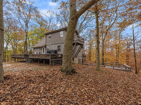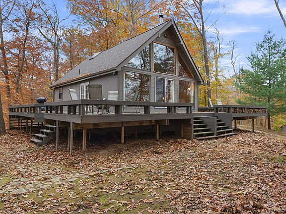 Looking for that perfect getaway Home? Look no more! This cozy 4BR, 2BA home won't disappoint. Finished walk out basement and lots of outdoor space for entertaining. New roof on cabin and garage, remodeled kitchen and bathroom, Barn wood shiplap and new light fixtures and many more updates to mention. Home sits upon 2 lots for a total of .96 acre in the desired community of Hide-Away-Hills. Multiple lakes for boating, fishing & kayaking, also has golf, pool, tennis, ORV trails, gun range, organic garden, beach, barn, lodge, clubhouse & brewery. Hide A-Way Hills is a gated community w/ 24 hour security. This home is a MUST SEE! Dam assessment is paid in full.