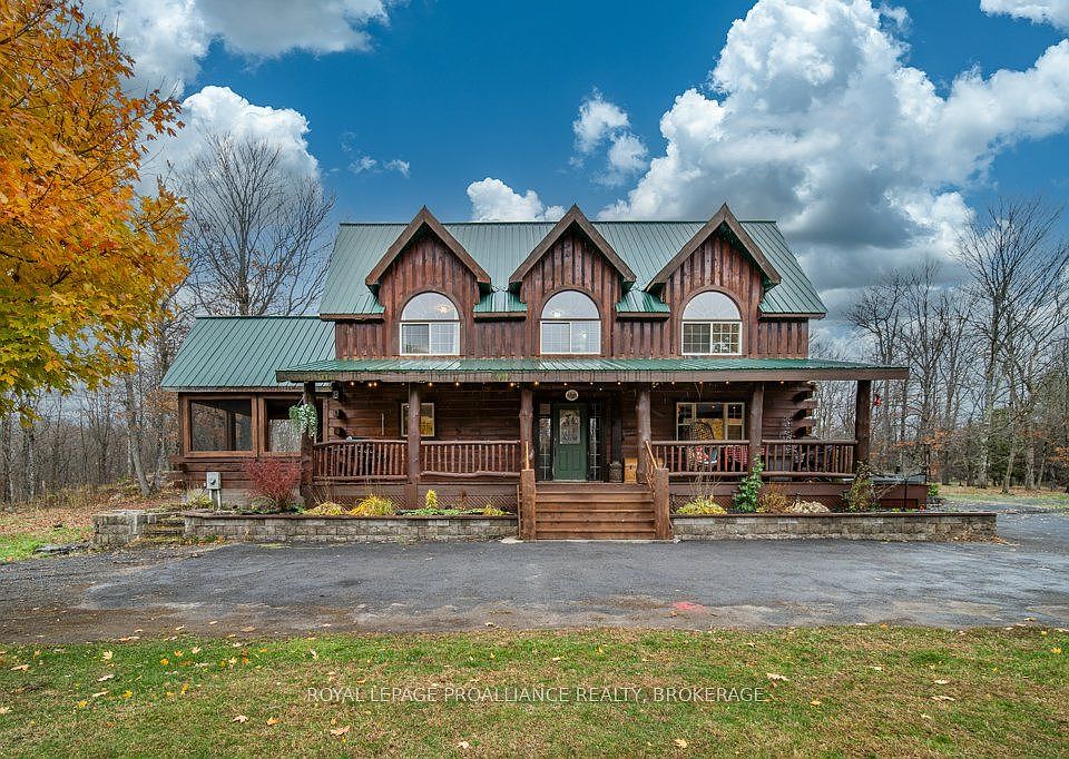Welcome to your private retreat in beautiful Sharbot Lake! This stunning 4-bedroom, 3-bathroom log home sits proudly on 10 picturesque acres surrounded by mature trees and natural scenery. Filled with rustic charm and unique character, this two-storey home offers warm wood tones, inviting living spaces, and a true sense of tranquility. The main floor features a spacious layout ideal for family living and entertaining, including a large sunroom, open concept kitchen and dining area and a cozy living room. Upstairs, you'll find well thought out finishings with large windows, natural wood flooring and 4 spacious bedrooms with plenty of space for guests or a growing family. The primary suite is equipped with an ensuite bath. The walkout basement is unfinished and ready for your personal touch: create a family room, workshop, or additional living space to suit your needs. Outside, the level lot provides plenty of room to explore, garden, or simply enjoy the quiet countryside. For those seeking even more space or investment potential, there's an option to purchase two additional adjoining parcels, a 10-acre and a 15-acre lot, offering endless opportunities for expansion, recreation, or future development. Located just a short drive to the village of Sharbot Lake with access to schools, shopping, and the lake itself, this property combines rural serenity with everyday convenience. * OPTION TO PURCHASE ADDITIONAL 10 and/or 15 ACRE ADJOINING PARCELS*