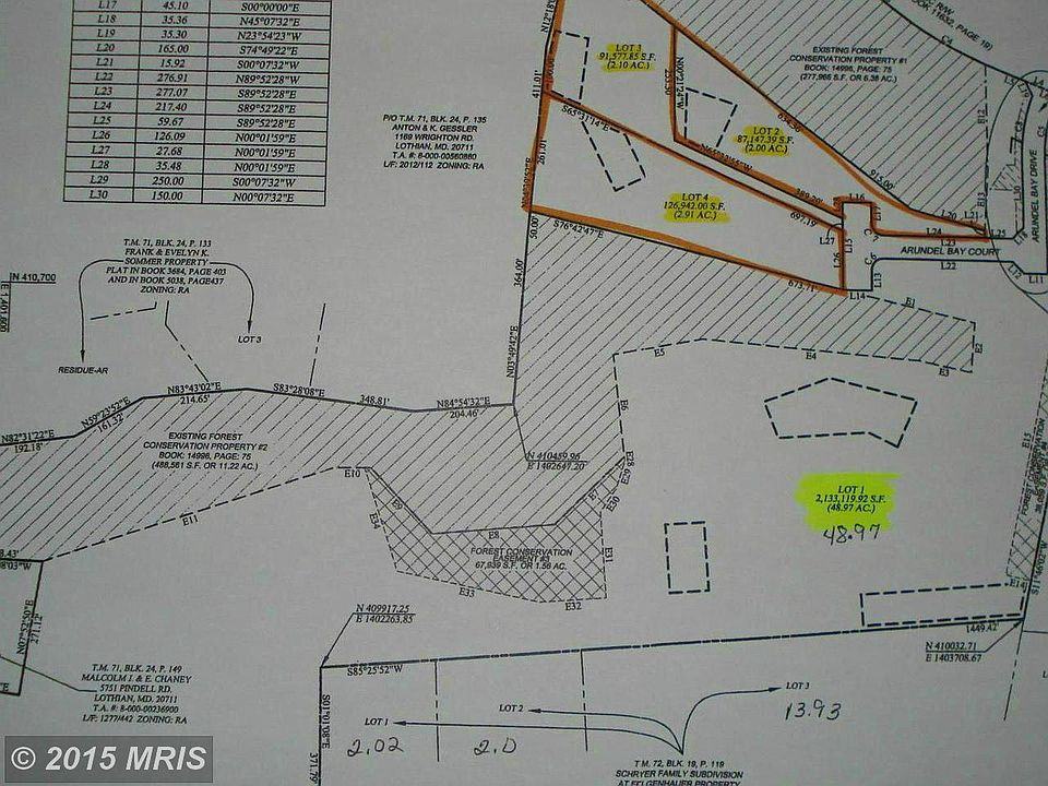 GREAT LOCATION!! LOT 1 = 48.97 Acres of clear land. Preliminary engineer stabilized work. Perc tested/sediment ponds "As Built" report due. Beautiful serene land backs to trees sub divide per county. Adjacent Lots 2, 3 & 4 Perc"d - 2-3+ acre lots for sale. 1161, 1163 & 1165 Wrighton Rd. Easy commutes RT4 & RT 2 to DC, No VA, Annapolis & Baltimore. Stay to left off of Pindell Rd.