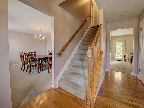 Don't miss this beautiful, spacious 4 bedroom home! Freshly painted. Hardwood entry,den,formal dining room,1st floor laundry/gas fireplace. Master has adj bath w/walk-in closet & soaker tub w/separate shower! Gorgeous yard w/wooded view, pergola & patio. Lower level is part finished w/an amazing HOME THEATER & extra bedroom. Eligible for USDA. Verify Schools.