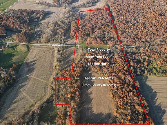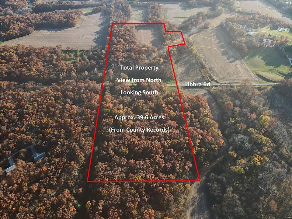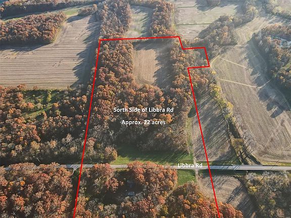 Beautiful wooded property with approximately 5 tillable acres. Property is split by Libbra Rd. Approximately 20 acres are on the north side, and another 20 acres on the south side. Five of the acres on the south side are currently being farmed. There is a 3 bed, 1 bath concrete block house and barn on the north side of the property. The house would be well suited for a hunting cabin. Home is on city water with septic system and propane tank. Electric panel is circuit breakers. Property is being sold as is with no repairs to be made by seller.