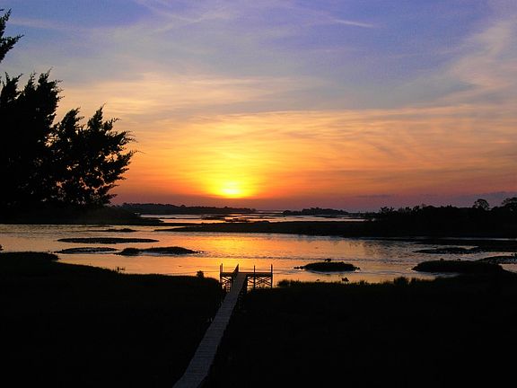 Stunning sunrises greet you daily from this spectacular custom-built home! A newly redone dock is your entry to world class fishing or award winning kayaking. Birders take note, this location cannot be beat to view ospreys, eagles, white pelicans, & roseate spoonbills. Perfect craft room & dark room downstairs. Parking for several vehicles, boats, even RVs. Inside you'll find incredible wood floors, upgraded kitchen featuring SS appliances w/ brand new gas range & luxury vinyl plank flooring that you'll swear is tile, comfortable den, butler's pantry, and a wood burning stove for cool nights! Storage galore throughout. Double offices, large dining room and wall of windows to take advantage of the outstanding view. Welcome to Boogie Ridge!