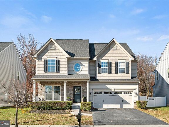 This beautifully appointed home features gleaming hardwood floors throughout the main level, elegant crown molding, and abundant natural light. The modern chef’s kitchen is a showstopper with a large center island, dual ovens, gas cooking, and generous counter space—perfect for both everyday living and entertaining. In addition to the formal dining room, there is a bright breakfast area right off the kitchen, ideal for casual meals. The kitchen flows seamlessly into the spacious family room, complete with a gorgeous stone gas fireplace. A charming front porch welcomes you home and provides the perfect spot to relax and enjoy the neighborhood. The property also features a large 2-car garage, offering ample storage and convenience. The upper level offers five generous bedrooms, including one currently transformed into a fabulous custom dressing room with built-in shelving and closets—a true fashion lover’s dream. The luxurious primary suite includes multiple walk-in closets and a spa-like bath with a soaking tub and oversized shower. Convenient upper-level laundry adds to the home’s functionality. The fully finished lower level is designed for entertainment, featuring a built-in wet bar, projector with screen, and a full bath—ideal for hosting gatherings or enjoying movie nights. Outside, enjoy a fenced-in yard and a lovely patio area, perfect for outdoor dining or relaxation. Located in the desirable Fieldcrest community, this home is convenient for commuters and just minutes from local shops, restaurants, and everyday amenities. This Fieldcrest gem offers exceptional space, style, and comfort—don’t miss it