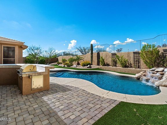 Welcome to your desert paradise in Troon North, just minutes from Pinnacle Peak and Scottsdale's world-class golf. This 4-bedroom, 2.5-bath home offers amazing indoor/outdoor living. Over 2800 sqft, an open floor plan features a spacious great room, 12' ceilings, a chef's kitchen with double ovens, island. The backyard is an entertainer's paradise with a Gas Heated sparkling new pebble pool, built-in BBQ and outdoor kitchen, covered patio, large putting green & turf, all enhanced by a misting system for year-round comfort. Located on a quiet cul-de-sac with great Mtn Views this home provides privacy and convenience, under 5 minutes from Troon North Golf Club and close to premier hiking, dining, shopping, and top Scottsdale attractions. A very well maintained & Low Maintenance Home. Situated in the highly desirable Desert Vista part of the greater Troon North area, this beautifully designed home blends comfort and lifestyle in one of Scottsdale's most sought-after locations. Located on a quiet cul-de-sac lot with views of Pinnacle Peak and Troon Mountain from your front door. You begin to relax the moment you arrive. Inside, you'll find an open-concept living room with abundant natural light, a chef-inspired kitchen with stainless appliances, breakfast bar, and casual dining area, plus four well-appointed bedrooms. The primary suite offers a luxurious bath and direct access to the outdoor living space.