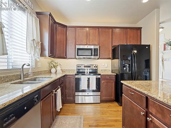 Welcome to your dream home! This 4-bedroom, 3-bath residence with a 2-car garage sits gracefully on a quiet cul-de-sac, offering privacy and a true sense of retreat. Built in 2016 by MasterBilt Homes—an award-winning custom home builder—this semi-custom design blends timeless craftsmanship with thoughtful upgrades you won’t find in a standard build, such as higher quality insulation, roofing, 2x6 construction, and an upgraded trim package. Step inside and you’ll be greeted by a spacious, light-filled layout designed for both comfort and style. The neutral design and finishes create the perfect backdrop to complement any décor. The open-concept living areas make entertaining effortless, while the kitchen serves as the heart of the home with stone countertops, 42” cabinetry, a breakfast island, and pantry. A generous primary suite provides a peaceful escape with a spa-like bath and walk-in closet. Upstairs, you’ll find three additional bedrooms and a full bathroom that ensure room for family, guests, or a home office. Step outside to a backyard designed for enjoyment—featuring a charming pergola and a perfect garden area, ideal for morning coffee, outdoor dining, or cultivating your own green oasis. The cul-de-sac location means less traffic and more tranquility—perfect for relaxing evenings or playtime. With a 2-car garage, modern systems, and the confidence of newer construction, this home offers worry-free living with custom touches that make it truly stand out. (Brand New Carpet throughout - just installed!) The HOA takes care of front yard maintenance, snow removal and trash - and you'll love the neighborhood park! And the metro district includes a membership to their two facilities - with gym and pools! Don’t miss your chance to own this beauty—schedule your showing today!