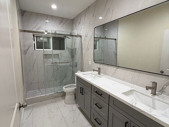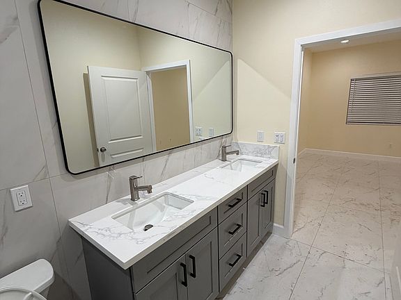3 bedrooms and 2 bathrooms. Master suite with walk-in closet and bathroom with two sinks.