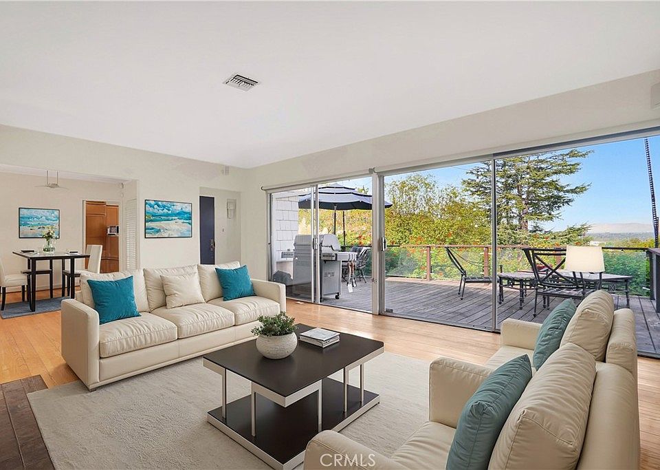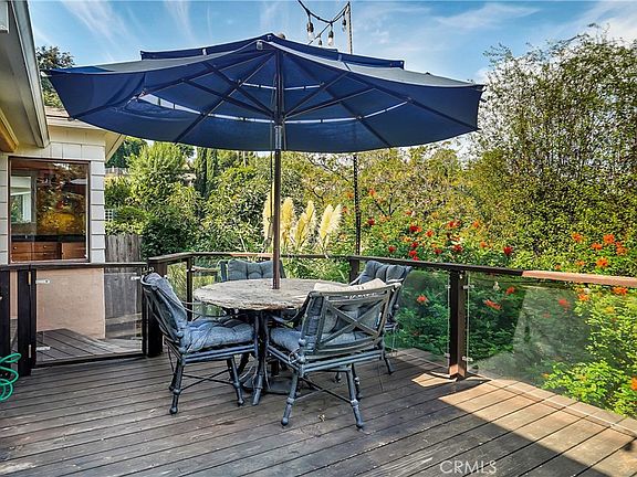 SPECTACULAR PANORAMIC VIEW, in the Studio City Hills, of the entire Valley enjoyed from BOTH a modern, private, fully furnished DECK as well as a wrap-around glass-enclosed living room. The Deck is oversized with a Bar B Que and two eleven-foot umbrellas. Single Level, South of the Boulevard, 5-minute walk to the heart of Studio City with a JACUZZI and outside shower! 2 Bedrooms, Den/Office, 2 baths (master bath recently renovated), Formal Dining Room, Fireplace, Hardwood Floors throughout, Modern Granite Kitchen with SUBZERO Refrigerator and WOLF Stove and state-of-the-art Water Filter. ALL rooms open to the Fabulous Deck or to the Private Patio. 220v EV Charging outlet in the garage, smart thermostat. Newer Roof (2023). AND up the hill from Laurel Tavern, Heavy Handed, and the Black Market Liquor Bar and down the street from the Shops @ Sportsman's Lodge.