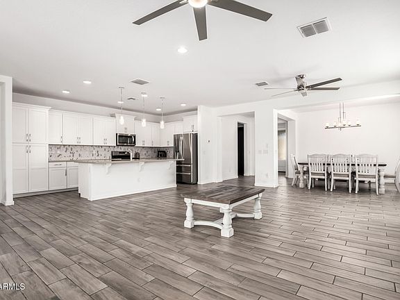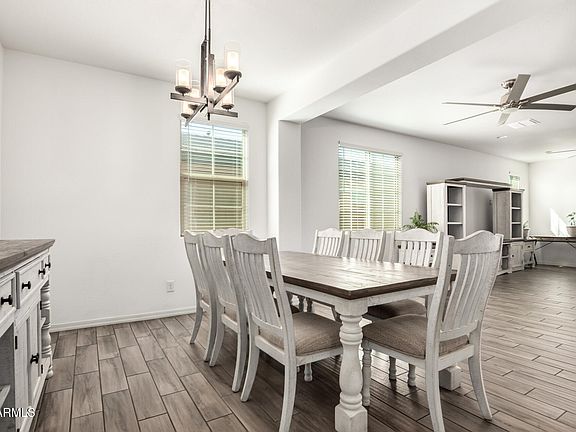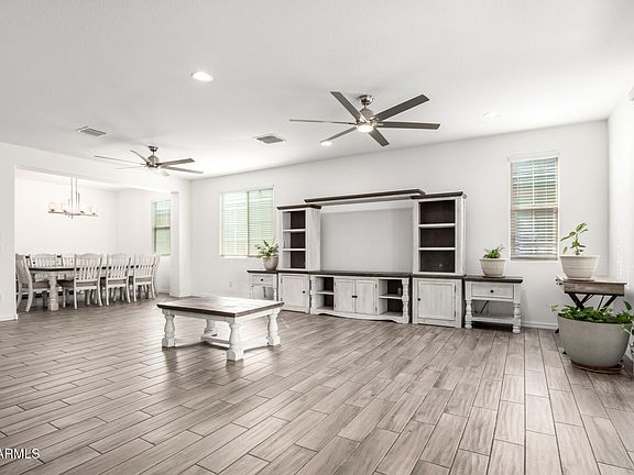 Seller open to VA loan assumption. This home has the perfect great room design featuring 4 Bedrooms + study, 2.5 baths & 3 car tandem garage! You will fall in love with the designer Kitchen featuring a large island, white linen shaker cabinets, evening gray quartz countertops, custom tile backsplash, Stainless Steel appliances and a gas range. Impressive walk in shower at Owner's bath, plank tile flooring extended in all the right places! Split bedroom design. Enjoy the AZ evenings on your Oversized patio.