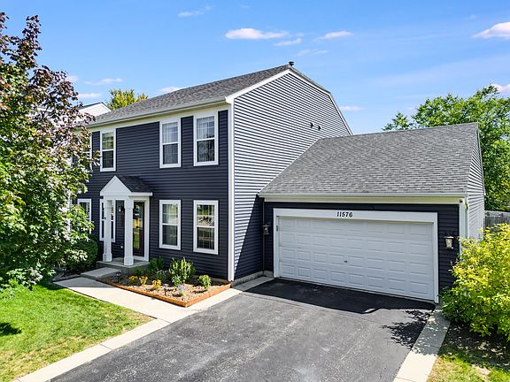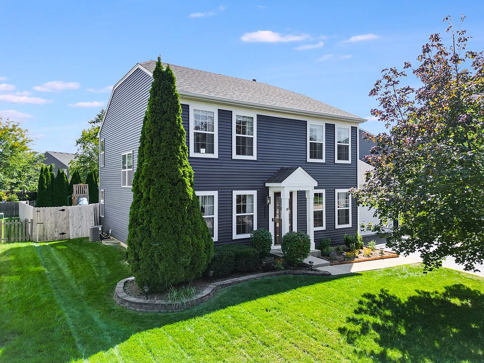 You will immediately feel the comforts of home as you enter this beautifully renovated home in the highly desirable Heritage subdivision. This home has been refreshed with modern style, including newer flooring, stylish shiplap accents, and modern farmhouse fixtures. The open concept kitchen with on trend painted white cabinetry and granite countertops overlooks the dining room, living area and versatile flex space. This makes it a perfect layout for both entertaining adults or keeping a close eye on the kids. Upstairs offers 4 generously sized bedrooms as well as 2 updated bathrooms. The master bedroom is a true retreat with sunshine flooding in and an ensuite bathroom featuring quartz dual sink vanity and a spacious walk in shower. The large finished basement enhances the livable square footage, with the perfect spot for a kids playroom, gym or guest room. If the interior didn't wow you enough, step outside to your own private oasis. You'll love relaxing in your fully fenced yard with mature trees for privacy, a stamped concrete patio, watching a show in the gazebo or floating in the above ground pool. Recent updates including new siding, fence, and gazebo (2023), HVAC (2017). Nestled between the charm of downtown Huntley and all the conveniences of the Randall Road corridor as well as a quick drive to schools and hospital. This home isn't just move in ready, it's move in and live your best life ready!