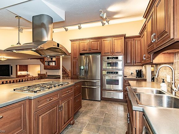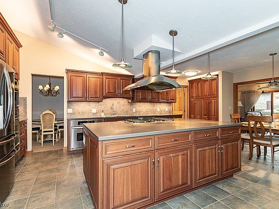 Rare find! This stunning home has been updated from top to bottom and meticulously maintained. Sitting on over 1.5 acres, this home boasts a gourmet eat-in kitchen with dual ovens, gas cooktop, stainless steel appliances and oversized island with hood and tons of cabinet space. In addition to the living room and dining room with vaulted ceilings, there is a large family room with woodburning fireplace, a bar/recreation room, a four-season room with fireplace, and a full bath on the first floor. The four-season room, kitchen and family room all have sliding glass doors that lead out to the deck and patio with beautiful mature landscaping and park-like views. There is also a large laundry/mud room with additional storage space and walk-in closet. Upstairs are three bedrooms and a full bath with walk-in shower and soaking tub. But wait, there's more! In addition to the 2-car attached, heated garage with Naturestone flooring, there is also a 3-car detached garage with a workshop and