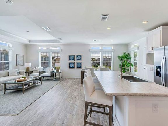 This beautifully crafted 2-bedroom, 2-bathroom home with a spacious 1,415 sq ft floor plan offers modern elegance and functionality. The home is designed with an open concept layout that seamlessly flows from the living area to the kitchen, creating the perfect space for everyday living and entertaining. The covered front porch welcomes you, while inside, luxury vinyl plank flooring, tray ceilings, and crown molding detail enhance the home's charm.The kitchen is a standout, featuring hardwood shaker cabinetry, high-definition countertops, and a ceramic tile backsplash. A large kitchen island provides ample storage and workspace, while the farmhouse kitchen sink adds a touch of rustic elegance. Equipped with stainless steel electric appliances, this kitchen is both stylish and practical.The master bathroom includes a walk-in ceramic tile shower, and both bathrooms are finished with framed mirrors and satin & brushed nickel hardware for a refined look. Designer pendant lights illuminate the space, complementing the home's modern aesthetic. Built to the highest Wind Zone 3 (WZ3) standards, this home is designed to stand up to the elements while offering ultimate comfort. With a carport for added convenience, this home combines luxury, durability, and timeless design.Introducing the brand-new Osprey Bay, a premier 55+ community located in the sun-drenched City of Palms, where sparkling waves meet white sand. Nestled within the heart of Fort Myers, Osprey Bay offers unparalleled access to everything this vibrant city has to offer. From the serene shores of Sanibel Island and stunning beaches to an abundance of top-tier restaurants, retail, museums, and coastal lifestyle experiences, this home provides a gateway to the very best of Fort Myers and beyond. Whether you're seeking relaxation by the water or exploring local attractions, Osprey Bay places you at the center of it all, offering a true taste of Florida's idyllic coastal living.*Model home starting price subject to change*