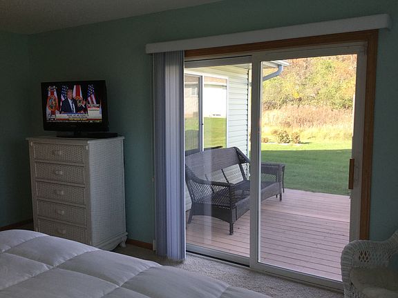 Beautiful, open floor plan with vaulted ceilings. 1696 Sq Ft. 3 Bedrooms, 2 Baths, 4 Season Room, & Gas Fireplace. Master Bedroom en Suite, walk in closet, 2 separate decks areas, and laundry room. Sits towards the end of a quiet neighborhood on the north edge of town near hospital, park, & YMCA. Infloor heat, instant hot water heater, central air, and large 2 car garage. All appliances included. No steps for easy access throughout the home all in 1 level. New kitchen countertops 1 year ago. Floor coverings include Tile, Carpet, and Laminate. $125 per month HOA fees cover all lawn care, sprinkler system and snow removal on this large corner lot! This is a lovely condo, don't miss out! Seller is a licensed Real Estate Agent. Call Dave @ 715-492-1725 to schedule a showing!