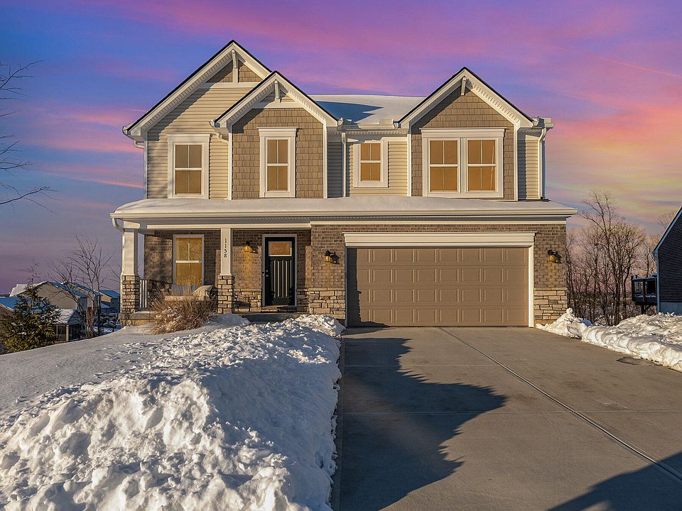 This beautifully maintained home, built in 2023, offers a perfect blend of modern comfort and style. With a stunning brick, vinyl, and stone exterior, it boasts a covered front porch and nearly half-acre, newly fenced yard, perfect for outdoor living. Enjoy entertaining on the oversized deck overlooking the wooded backyard. Inside, the open floor plan creates a welcoming atmosphere with hardwood floors throughout the first floor. The spacious kitchen features white cabinetry, stainless steel appliances, granite counters, and a large island with seating. A cozy study with frosted glass doors offers a private work-from-home space. Upstairs, the large primary bedroom includes a vaulted ceiling, walk-in closet, and ensuite. Three additional bedrooms each have walk-in closets. Convenient second-floor laundry and abundant recessed lighting throughout. Owners appreciate the abundance of natural lighting and tall counter height cabinets in the primary bedroom - you will too! This home shows like new and has been meticulously cared for—truly move-in ready! NO HOA!!!