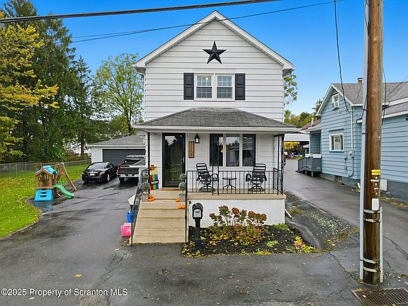 Welcome home to this beautifully updated two-story in the heart of Old Forge. Step inside to find bright, modern living spaces with fresh flooring, neutral paint, and plenty of natural light throughout. The stylish kitchen features white cabinetry, wood-tone countertops, and a tile backsplash that makes it perfect for both cooking and entertaining. Upstairs, you'll find two spacious bedrooms and a fully remodeled bathroom with subway tile and modern fixtures. The finished lower level adds valuable bonus space with a second bathroom, great for a family room, home gym, or play area. Outside, enjoy the large deck, fenced yard, and detached garage. Conveniently located near schools, parks, and restaurants, this home blends classic charm with modern comfort. Move right in and start enjoying life in Old Forge.