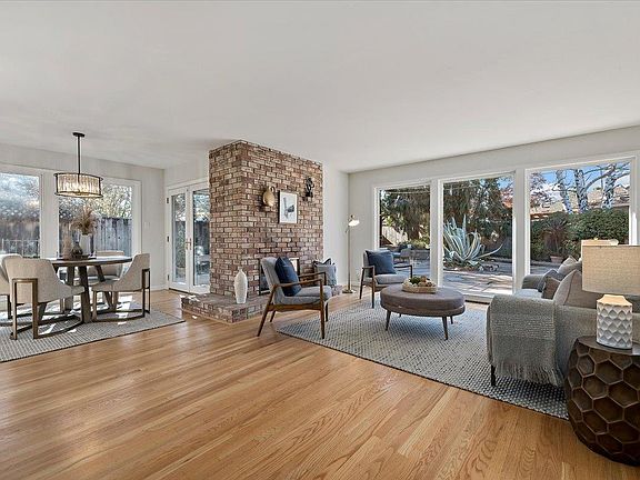 Nestled in a truly unique and serene setting this charming single-story home offers a peaceful retreat with an expansive park-like backyard perfect for relaxation and/or entertaining. The living room features dramatic floor-to-ceiling glass panels seamlessly blending indoor and outdoor living. French doors in the dining room add a touch of elegance complementing the newly refinished hardwood floors, modern interior lighting, new electrical outlets and interior doors conveying convenience and comfort. With three bedrooms including a primary suite boasting a picturesque bay window and dressing table area this home exudes comfort & style. The fenced yard includes flagstone pathways, a cozy hot tub & plenty of space for enjoying nature. A welcoming fireplace and remote-controlled ceiling fans in each bedroom enhance the convenience & charm of this idyllic home. Perfectly suited for creating lasting memories, this property is a rare gem waiting to be discovered! Los Altos Schools and within 2 miles to St. Francis High School.