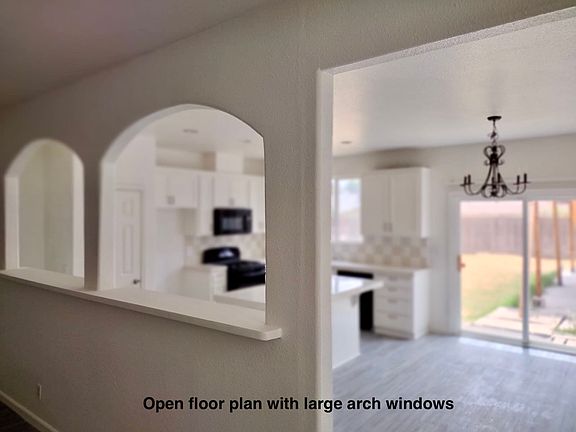 - Exterior features: Custom white cabinetry, Dining space, Fresh paint, Kitchen island, Lawn, Near HWY 145, New wood-style flooring, Spacious living room, Spacious master bedroom, Tile backsplash