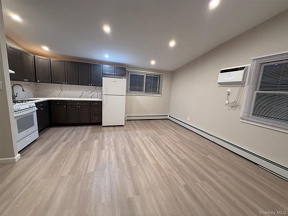 Welcome Home to this beautifully renovated unit located close to all in the heart of Franklin Square. This 1 bed/1 bath unit features an open floorplan, new laminate flooring throughout, new windows and lot's of storage! The bright and beautiful kitchen is finished with quartz countertops and backsplash, under mount sink, new shaker cabinets, new appliances with gas cooking. The living room/ dining area offers vaulted ceilings, high hats, in wall AC unit and new laminate flooring. The bedroom features a large walk in closet, high hats, new laminate flooring and en suite bathroom. No pet's/ No smoking. On street parking. Gas, water and heat are included. Electric is paid by tenant in addition to rent. Credit/background check required. One year lease. Available immediately