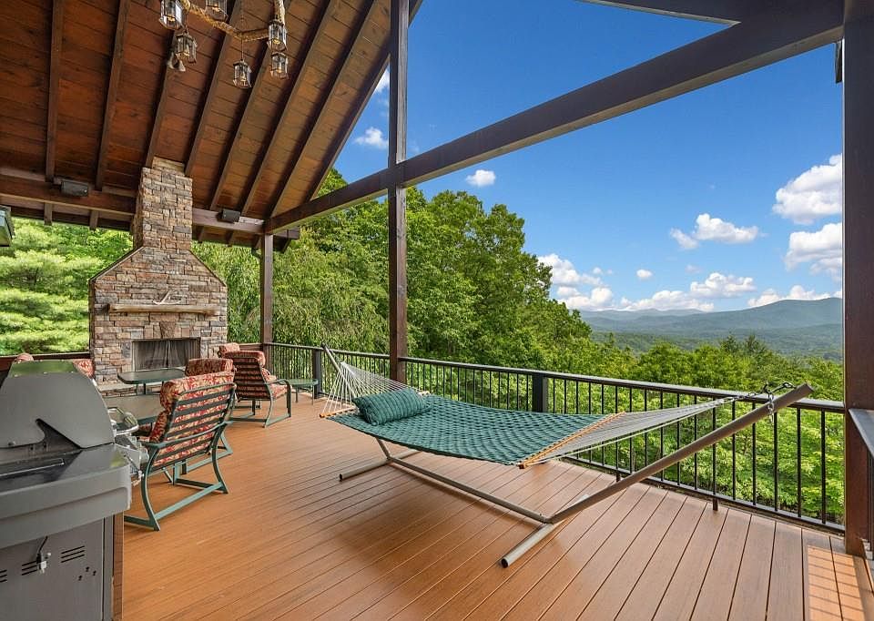 Welcome to Tranquility Lodge your Dream Mountain Getaway nestled in the heart of the Blue Ridge Mountains, with an estimated Short Term Rental Income of $57K Annually! This stunning home lives up to its Scenic Address, offering Sweeping Mountain Views and the perfect place to Relax, Unwind, and Enjoy Nature's Beauty. Situated on Over 3 Acres of pristine mountain land, the property combines Seclusion and Serenity with unmatched access to local favorites. Just minutes from Local Apple Orchards, Award-Winning Wineries, and the Charming Downtowns of Blue Ridge and Ellijay, this retreat places you near everything while feeling miles away. Spend your days Tubing or Fishing on the Gorgeous Toccoa River, Dining at the Acclaimed Toccoa Riverside Restaurant in Aska, or Boating on Lake Blue Ridge. It's a Peaceful Escape from the City without sacrificing access to Top-Notch Amenities. Whether you're searching for a Vacation Home, Long-Term Rental, or a Permanent Residence, Tranquility Lodge offers Generous Space and Endless Versatility. Step onto the inviting Wraparound Porch and take in the Panoramic Views. Inside, a Wall of Windows stretches to the Vaulted Ceiling in the Living Room, filling the space with Natural Light and Stunning Blue Sky Vistas. To the right, a Private Office/Library offers a Quiet Space to work or unwind. The Living Room is the Heart of the Home, featuring Soaring Ceilings, Rich Wood-Paneled Walls, and a Striking Stone Fireplace creating a Cozy Ambiance you'll never want to leave. The Kitchen opens to the Living Room and includes a Cozy Breakfast Nook with Mountain Views, a Cushioned Bay Window Seat perfect for reading, a Large Island, Stained Cabinetry, Stainless Steel Appliances, and Ample Storage. A Spacious Laundry Room with Sink and Built-Ins and a Convenient Half Bath are also on the Main Level. A beautiful Bedroom Suite on the Main Level features a connected Bright Sunroom lined with windows and offers Uninterrupted Mountain Views and Deck Access, making it an excellent option for a Primary Bedroom if preferred. However, the True Primary Suite is located on the Terrace Level, offering complete privacy and luxury. This expansive retreat includes a Gas Fireplace, Private Access to a Screened Porch, and a Spa-Like Ensuite Bathroom with a Double Vanity, Soaking Tub, Glass-Tiled Shower, and Walk-In Closet. Upstairs, a Loft Space offers endless possibilities create a Reading Nook, Playroom, Home Office, or Additional Bedroom. Another Ensuite Bedroom with Vaulted Ceilings, Breathtaking Views, and space for a Sitting Area or Desk completes the upper level, along with a Full Bathroom. The Daylight Terrace Level is built for Entertaining, complete with a Full Second Kitchen, Wraparound Bar, Dining or Game Table Area, and an inviting Fireplace. Step outside to the Walk-Out Patio featuring a Covered Space and Hot Tub perfect for watching the Sunset with a Glass of Wine. A Rare 3-Car Garage with Unfinished Space Above provides plenty of room for extra storage or future expansion. The Expansive Driveway offers Ample Parking, making this home ideal for Hosting Family and Friends. Tranquility Lodge is truly a One-of-a-Kind Mountain Retreat a rare blend of Rustic Charm, Modern Comfort, and Unforgettable Views. With close proximity to Downtown Blue Ridge, Lake Blue Ridge, and the area's Finest Wineries and Restaurants, this is more than a home it's a Lifestyle. Don't Miss Your Chance to Own This Spectacular Escape!