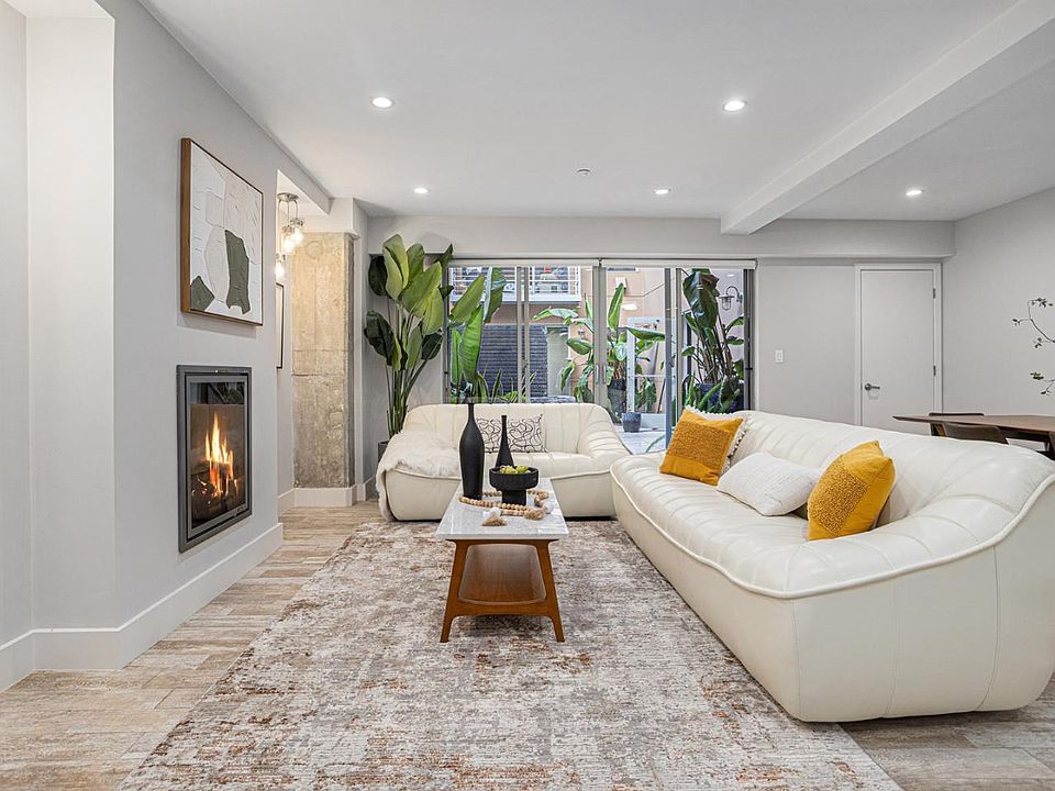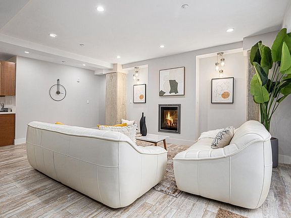 Gas starter fireplaceState-of-the-art kitchenCustom cabinetryPorcelain flooringDesigner fixturesCaesar stone countersProfessional grade appliances