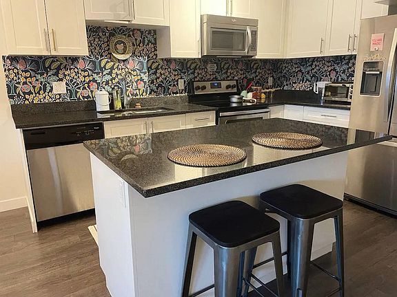 Gourmet kitchenLarge islandGranite countertopsMaple cabinetryModern fixturesStainless steel appliancesHigh ceilings