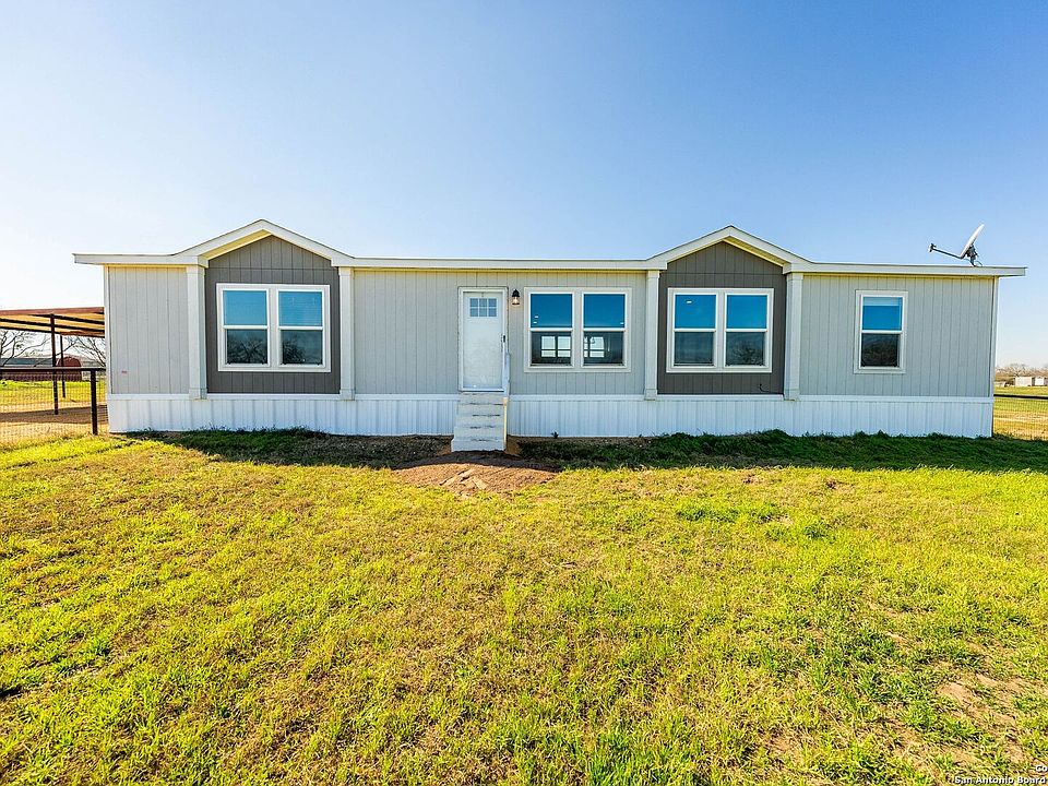 This stunning 4-bedroom, 2.5-bathroom manufactured home sits on a spacious 2-acre lot, offering the perfect blend of country living and modern style. Flooded with natural light, the home features beautiful finishes throughout, including sliding barn doors, accent walls, and a farmhouse-style kitchen sink. The large kitchen island provides plenty of space for cooking and gathering, while the primary bathroom boasts a luxurious free-standing tub for ultimate relaxation. The gated and fenced yard offers privacy and security, with horse stalls for those looking for an equestrian-friendly property. This home is truly a must-see!