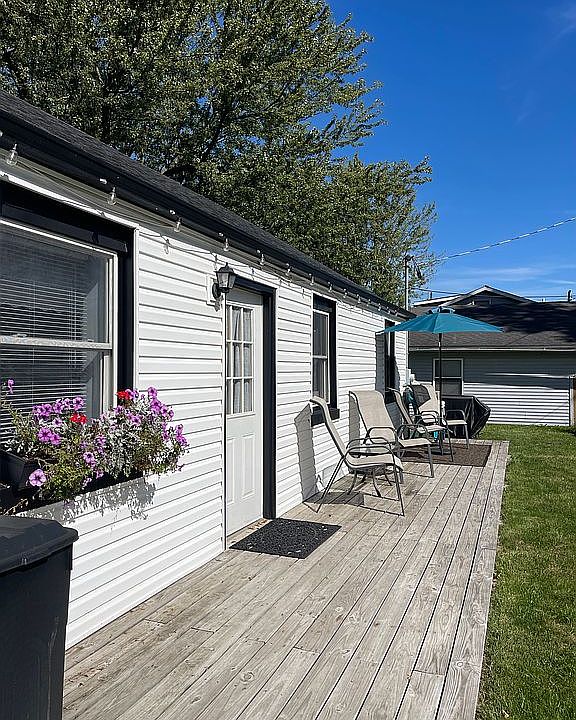 Large deckCathedral ceilingsFresh paintNew appliancesNew ltv flooringBathroom refreshNew exterior doors