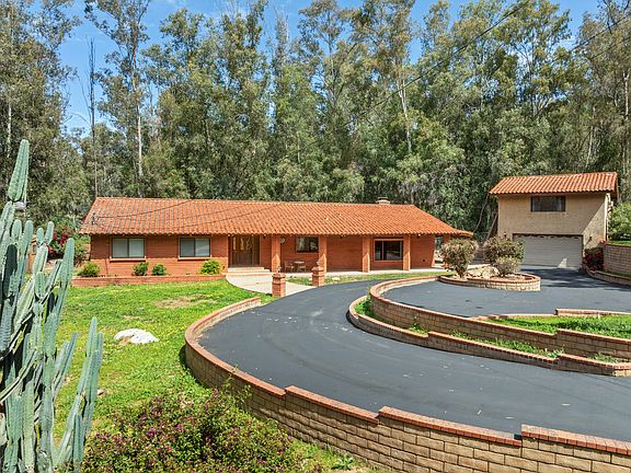 This compound has three buildings, the main house with 4 bedrooms and 2.5 baths and a beautiful, must see, great room with vaulted ceiling and gorgeous wood burning fireplace and laundry room with washer and dryer and an extra refrigerator. The second building is a two car garage with an adu on the second floor, approximately 500 sq ft. It has a bedroom with a bathroom, walkin closet, kitchen and living/dining area. The third building is a shop with enough room to house up to 4 cars. This building also has an RV storage area attached. This area has been split in half, with the top half being a storage area and enough room on the bottom to store another vehicle. There is a garden area with 12 large raised garden beds. There is a beautiful, newly resurfaced, circular driveway. It is a hidden gem in the center of Eucalyptus Hills.