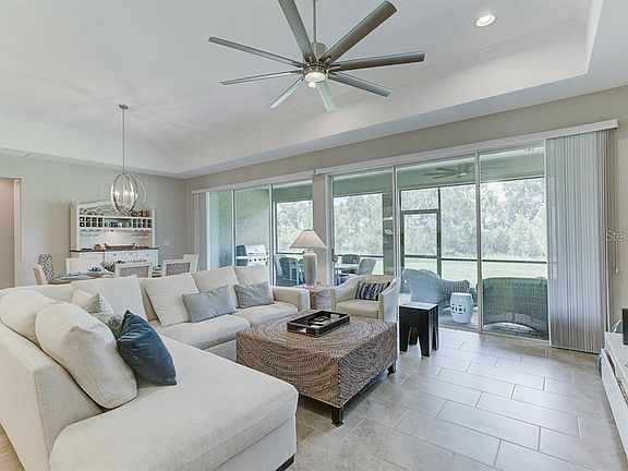 New Price! Why wait to build, when this magnificent coastal elevation Hampton home in the gated community Renaissance at the West Villages is ready for occupancy? At 2,300 square feet with over $40,000 in design options, this 3 BR & Den, 3 BA, 3-car split garage home is situated on a private preserve location with plenty of room for a private pool, if desired. The open floor plan with large granite-topped center island is ideal for entertaining family and friends. You will love the soothing neutral color palette and natural light throughout this beautiful home. The living areas, office and bath rooms feature plank tile flooring and the bedrooms offer upgraded carpeting. The gorgeous designer fans throughout the home provide gentle breezes and the spacious Master Bedroom walk-in closet and laundry room have added custom cabinetry. Your kitchen is the focal point of the home with 42" Sonoma Linen cabinets, Whirlpool stainless-steel appliances and added after-market duct work for ventilation through the roof. The large lanai offers a soothing view of the greenbelt and preserve and is the perfect spot to enjoy your morning coffee. The split 3-car garage has painted floors and additional storage. Builder 10-year structural warranty is transferable. The Renaissance is a lifestyle community with amenities that rival any vacation resort! Beach-entry pool with lap lanes, tennis courts, pickle & bocce ball & Clubhouse with cafe and social room. Close to area beaches, shopping, restaurants & more.